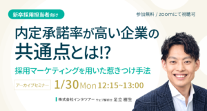 【1/30アーカイブセミナー開催決定】内定承諾率が高い企業の共通点とは!? ~採用マーケティングを用いた惹きつけ手法~